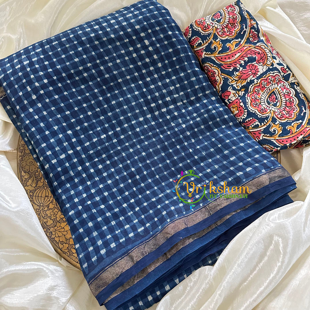 Blue Chanderi Handloom Saree -Checks-VS1901