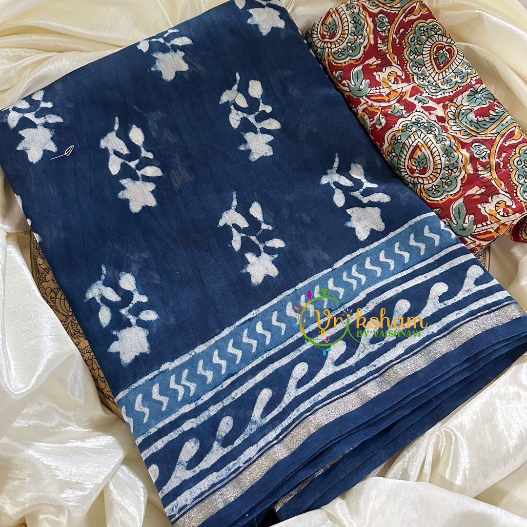 Blue Chanderi Handloom Saree -Star Flower-VS1903
