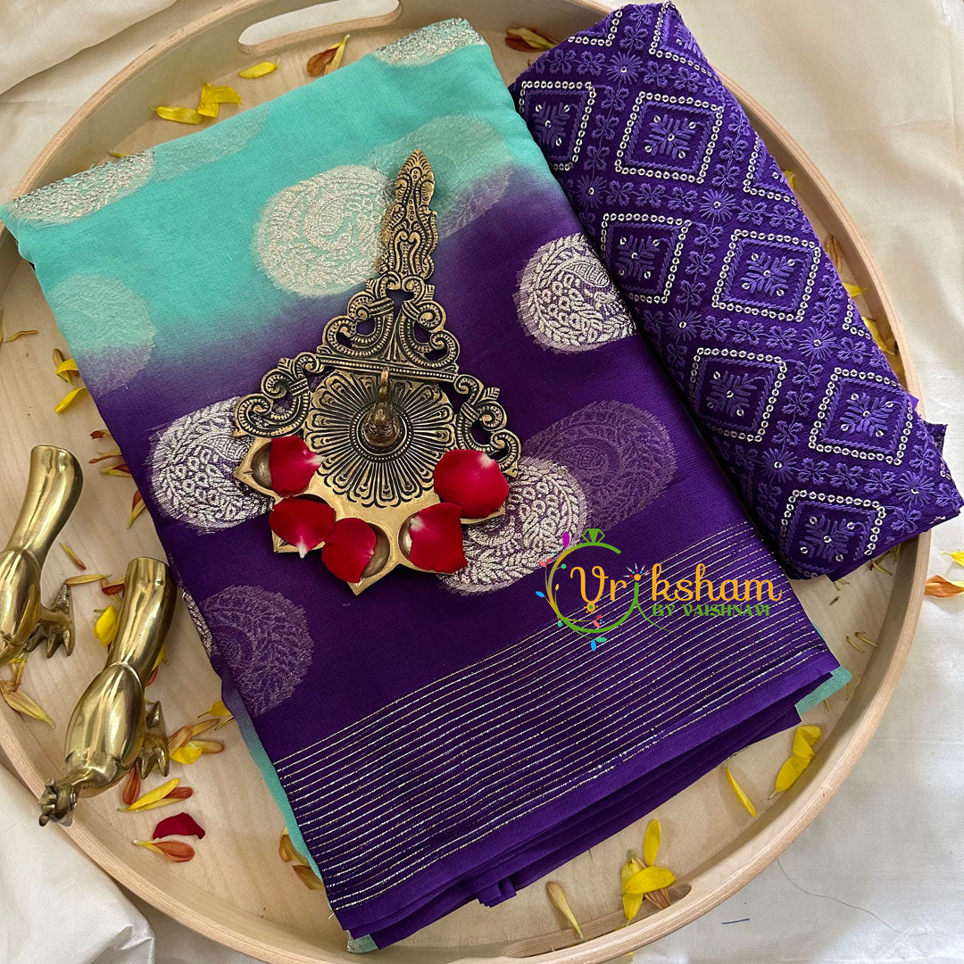 Blue Double Shade Georgette Saree – Festive wear saree – Butta work throughout the saree; comes with separate Blouse. Thread work two side traditional border.