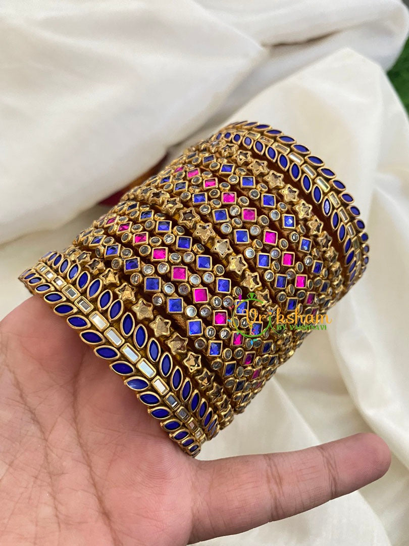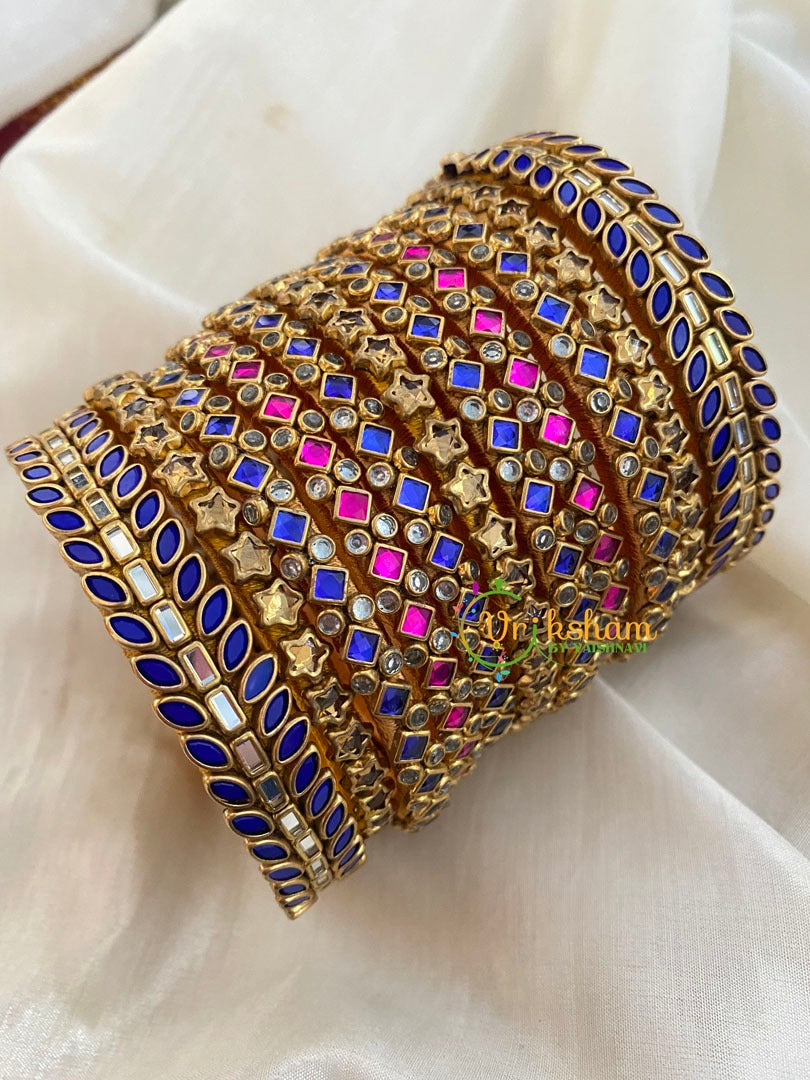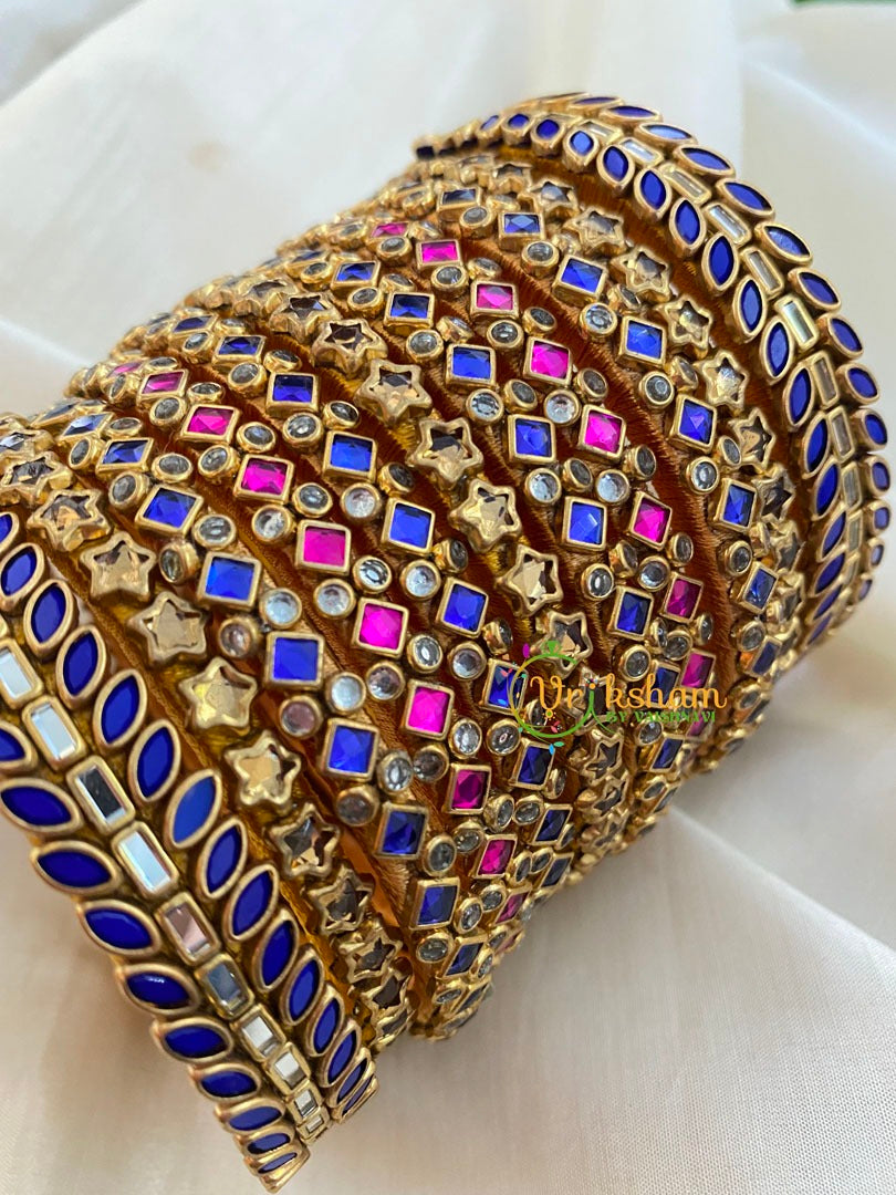 Silk Thread Blue Pink Kundan Bridal Bangle– Silk Thread Bangles- kundan stone festive bangles , Comes as a set only.