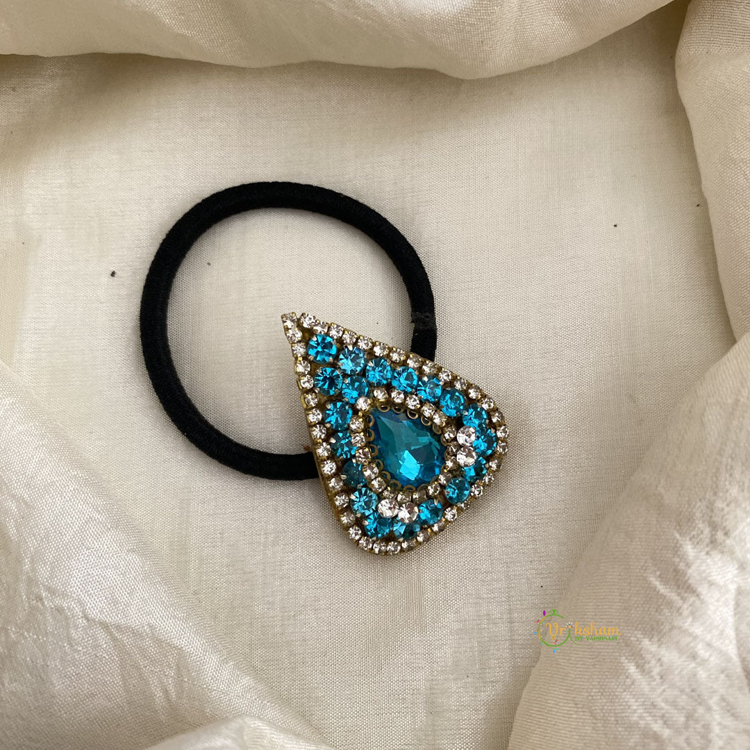 Blue, White Kundan Pendant Rubber Band -Festive Wear Hair bands-premium gold like polish pendant.