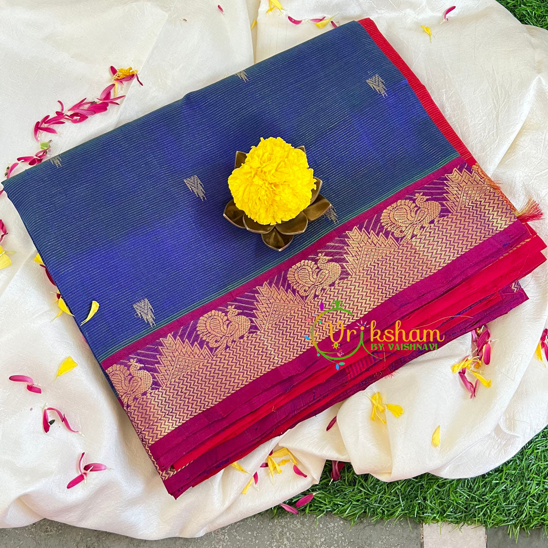 Ink Blue with Red Silk Cotton Saree - Vairaoosi Silk Cotton Saree - Festive wear saree – Vairaoosi and small butta pattern throughout the saree; comes with Blouse attached. Two side contrast border and pallu.