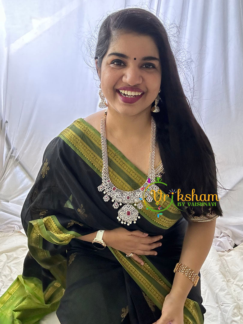 For more such neckpieces visit, https://vrikshamindia.com/product-category/golden-jewellery/american-diamond/
