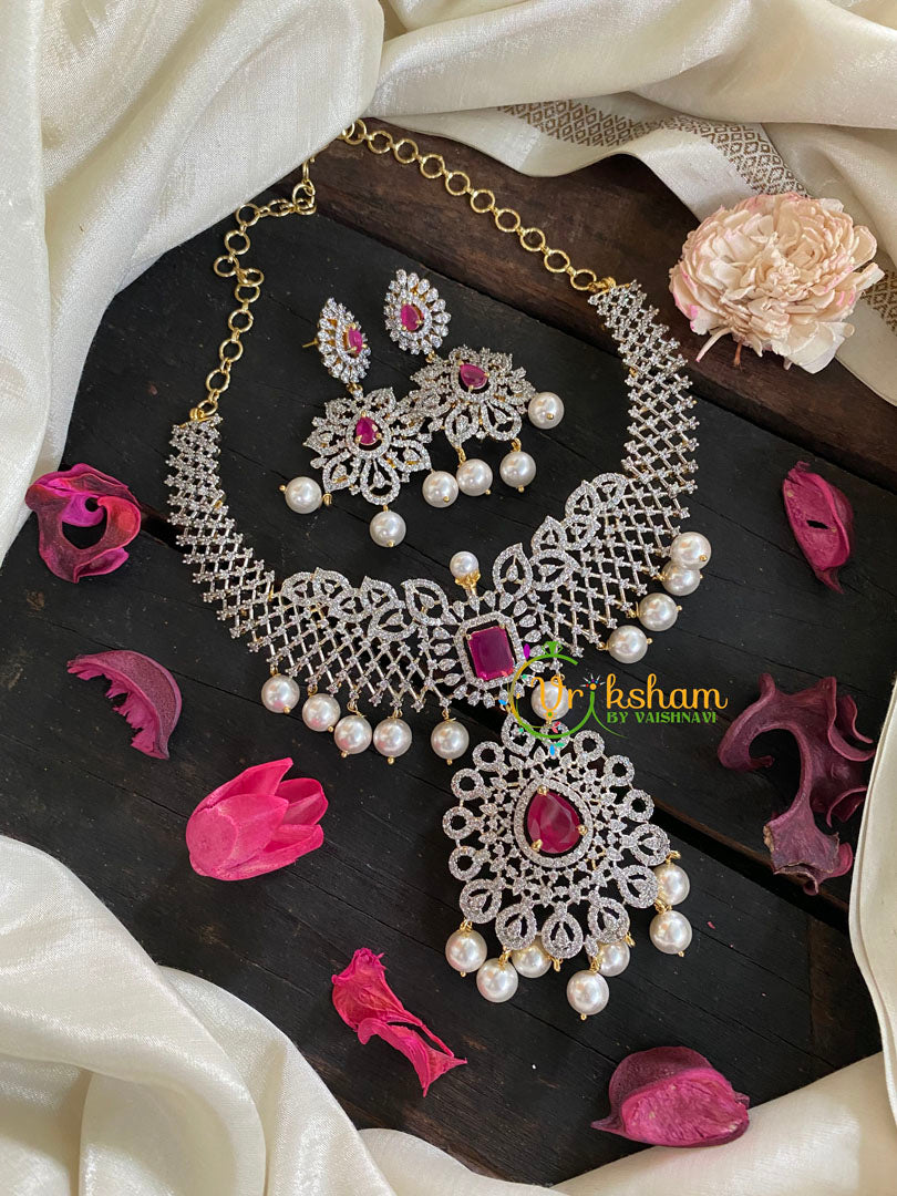 Bridal American Diamond Neckpiece-Red-Tilak Pendant-G4404