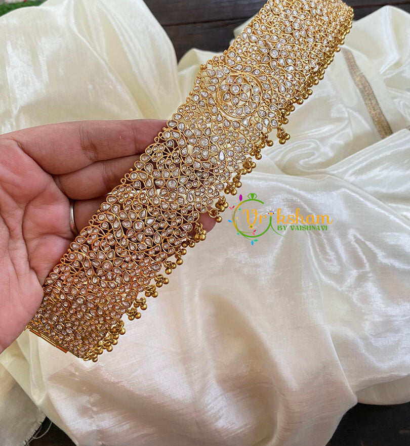 Bridal Kundan White Hipblet - kundan like stone studded Annam and floral pattern festive hipbelt with back belt.