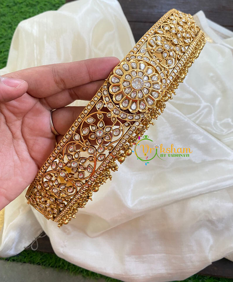 Bridal Kundan White Hipblet - kundan like stone studded floral pattern festive hipbelt with back belt.