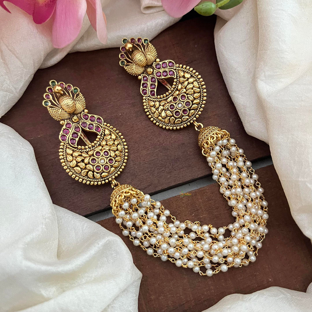 Elevate your bridal hairstyle with our Bridal Peacock Jada Billai! Adorned with pearls and intricate designs, this piece is perfect for adding a touch of glamour and tradition to your look. The vibrant red and green accents will surely make you stand out on your special day!