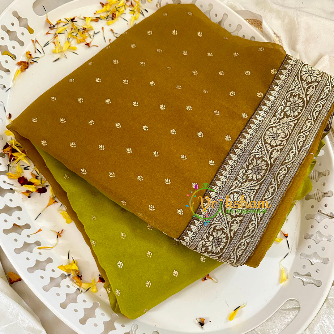 Fancy Chiffon Saree – Festive wear saree – Dotted work throughout the saree; comes with Blouse attached. Thread work two side traditional border. Patch worked saree with separate blouse.