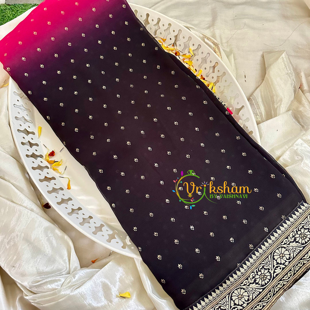 Material: Rani Pink Black Chiffon Saree