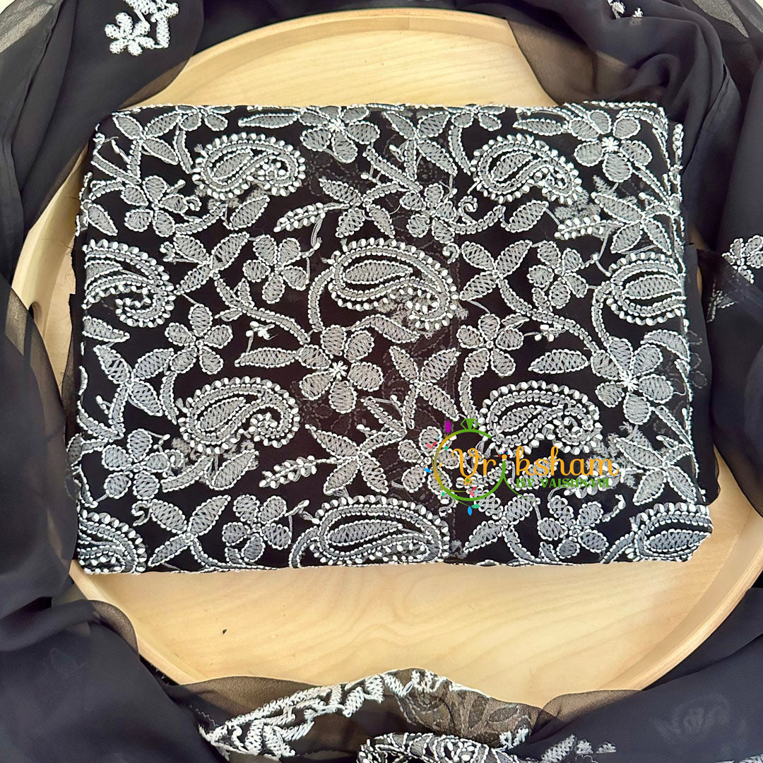 Black Chikankari Suit Material Set -Salwar kameez material set – comes as whole material top, bottom and shawl. Handloom Chikankari suit set.