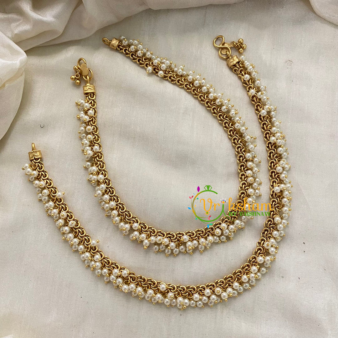 Cluster Pearl Bridal Anklets gold look alike pearl anklets- NO STONE anklets -layered broad anklets.