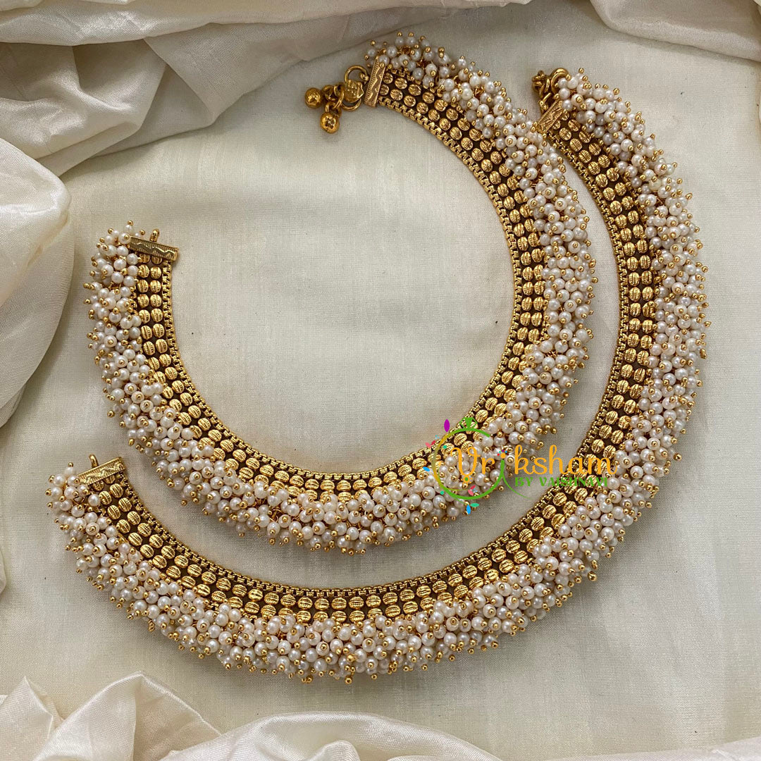 Cluster Pearl Bridal Anklets gold look alike pearl anklets- NO STONE anklets -layered broad anklets.