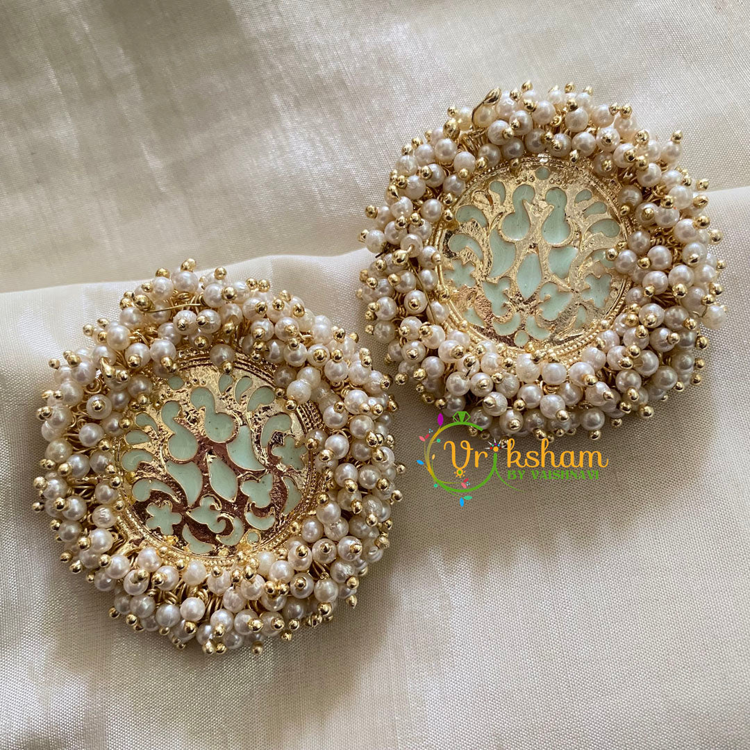 Cluster Pearl Meenakari Studs-Pastel Green-Jumbo Studs with hand painted ; fancy Stone and Pearl finish. Jumbo size.