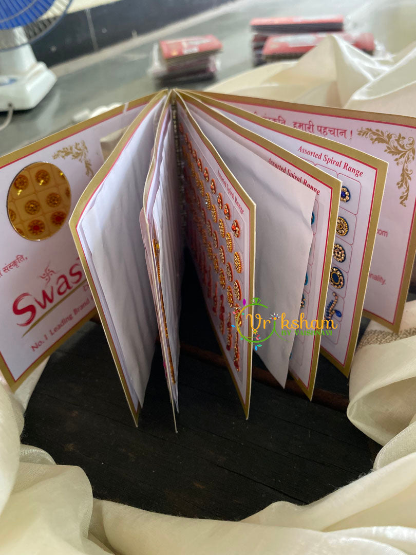 Cocktail Stone Bridal Bindi Book-Swastik Short– pages of bindis of different colors with different stone set bindi in sheets.