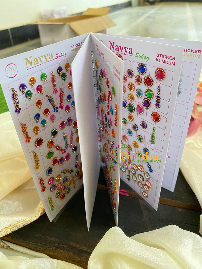 Cocktail Stone Bridal Bindi Book -Navya Long– pages of bindis of different colors with different stone set bindi in sheets.