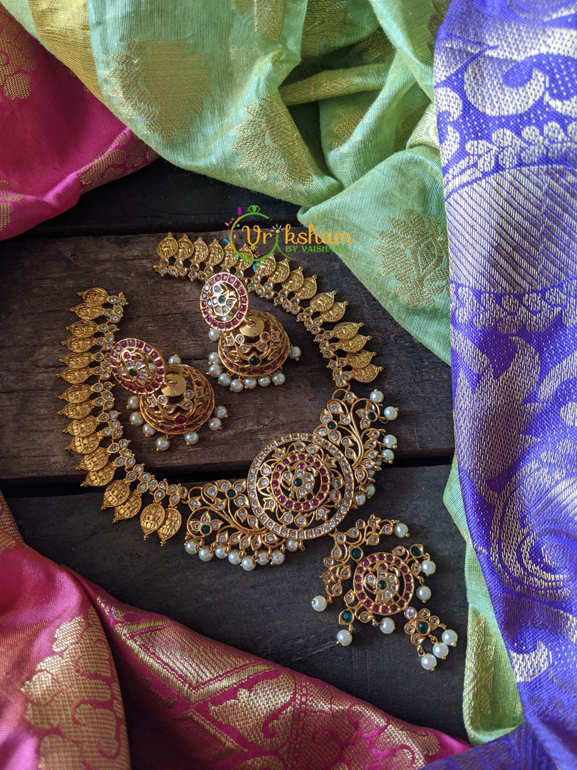 For other such short neckpieces please visit – https://vrikshamindia.com/product-category/golden-jewellery/short-neckpieces/