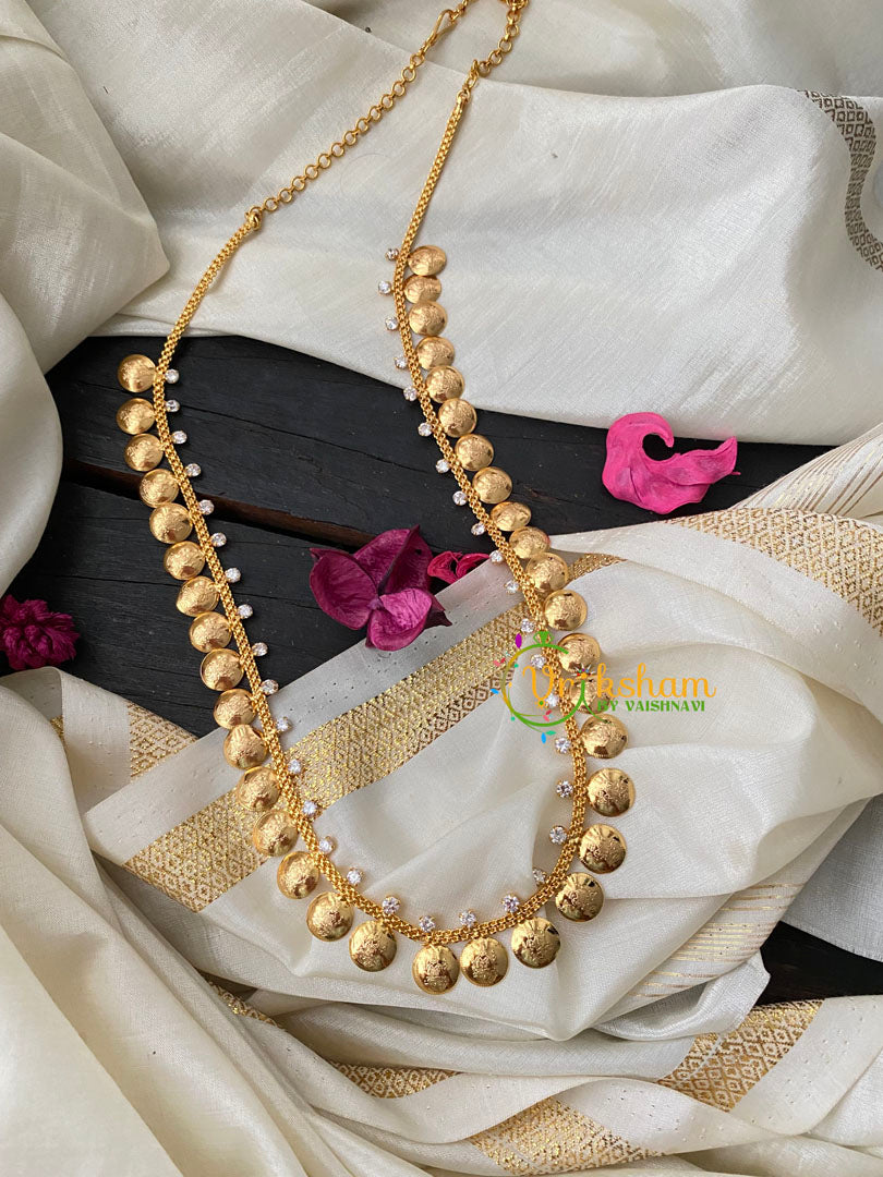 Traditional Kerala Coin Style Lakshmi Neckpiece-white ad stone studded-Traditional Kerala Temple jewelry- laskhmi design on round coin like pendant. NECKPIECE ONLY.