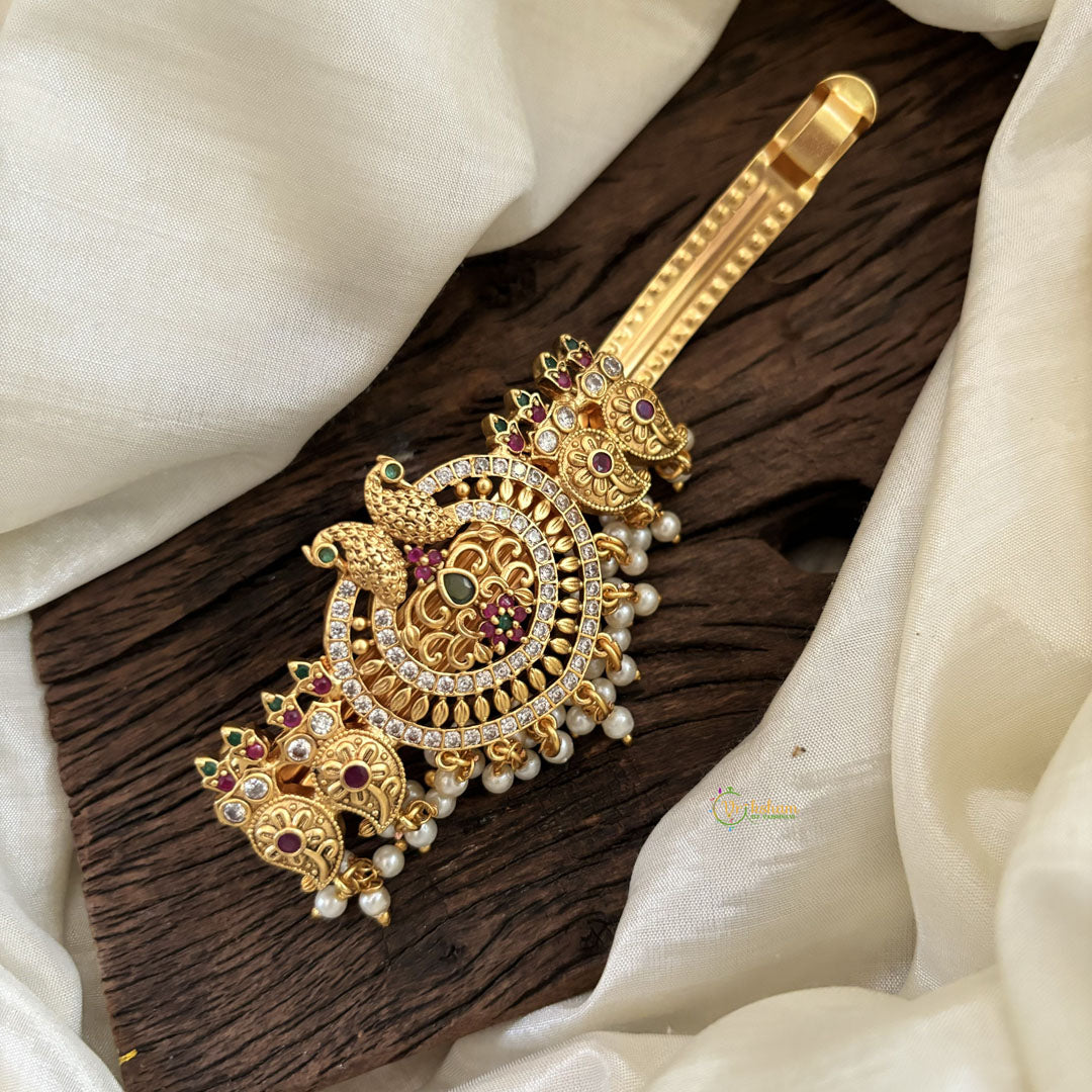 Premium American DIamond Hair clip - Annam - Gold Bead hair clip for festive braids and hairstyling.