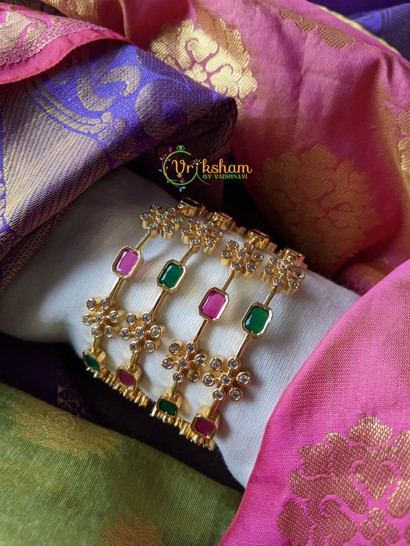CZ Stone Bangles - Multicolor stones and white CZ stone flower patterns. Gold look polished. Doesn't come as individual pieces.