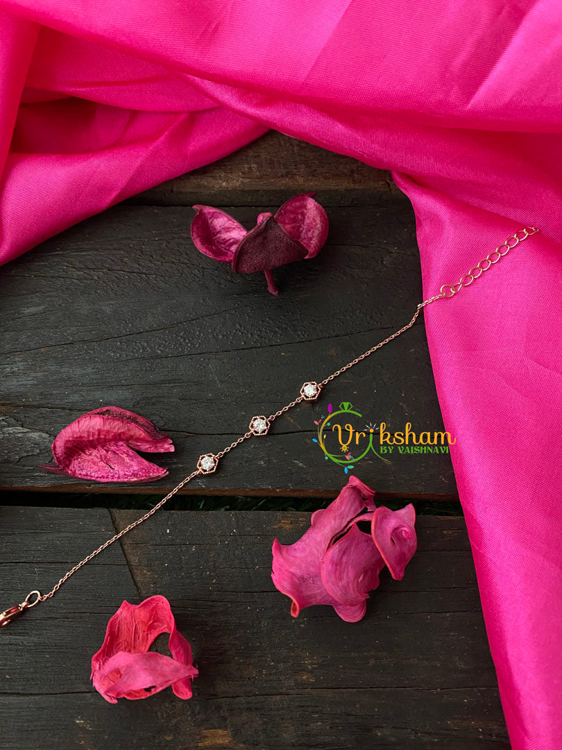 Daily Wear AD Stone Bracelet Chain-Hexagon patterned -ROSE GOLD TONE bracelet chain. Designer bracelet chain.