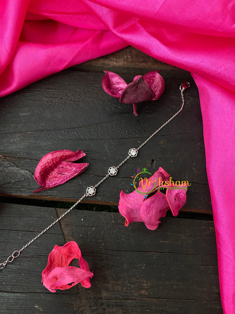 Silver Daily Wear AD Stone Bracelet Chain-Hexagon patterned -WHITE TONE bracelet chain. Designer bracelet chain.