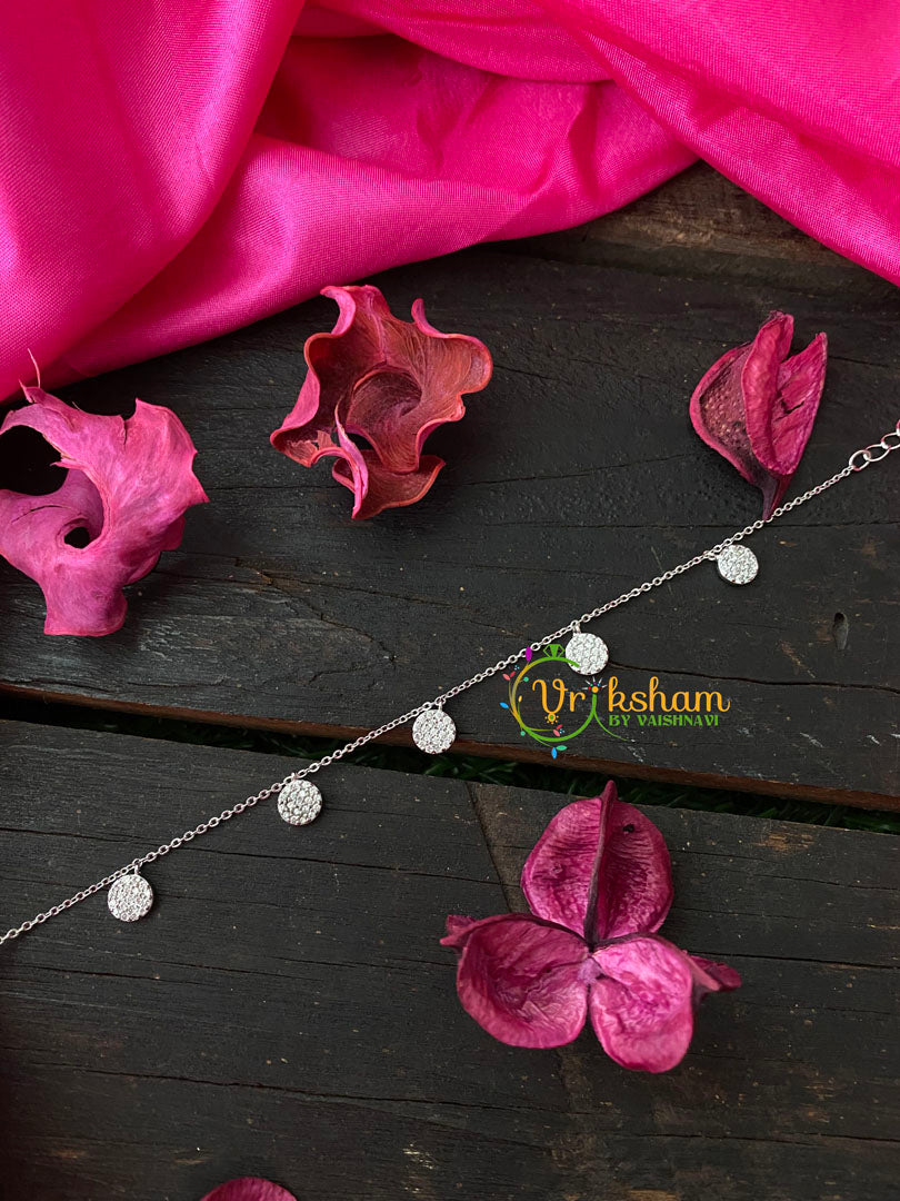 Silver Daily Wear AD Stone Bracelet Chain-Circles patterned -WHITE TONE bracelet chain. Designer bracelet chain.