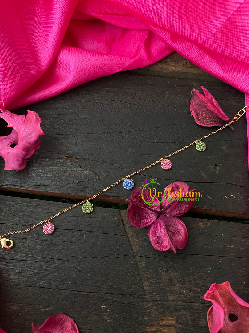 Gold Daily Wear AD Stone Bracelet Chain-Circles patterned - Color stone -GOLD TONE bracelet chain. Designer bracelet chain.