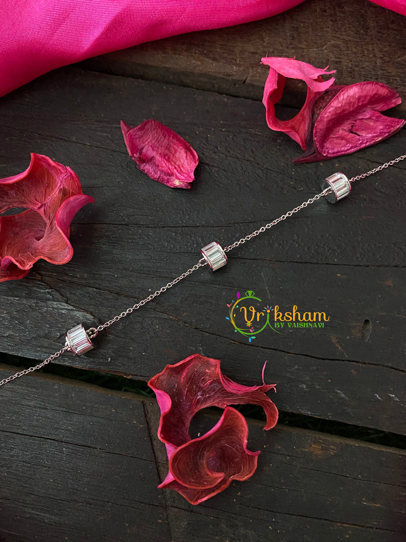 Silver Daily Wear AD Stone Bracelet Chain-Roll patterned -WHITE TONE bracelet chain. Designer bracelet chain.