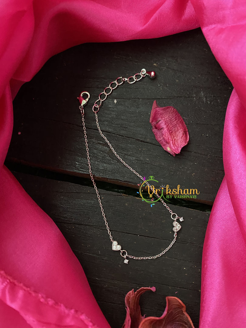 Silver Daily Wear AD Stone Bracelet Chain-Twin Hearts patterned -WHITE TONE bracelet chain. Designer bracelet chain.