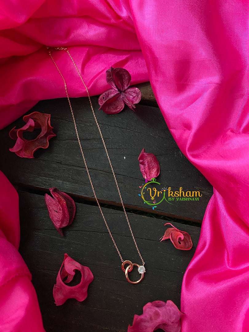 Designer Daily Wear AD Stone Pendant Chain Neckpiece-ROSE GOLD TONE - Ring in a Ring Pendant western neckpiece single pendant chain; NECKPIECE ONLY.