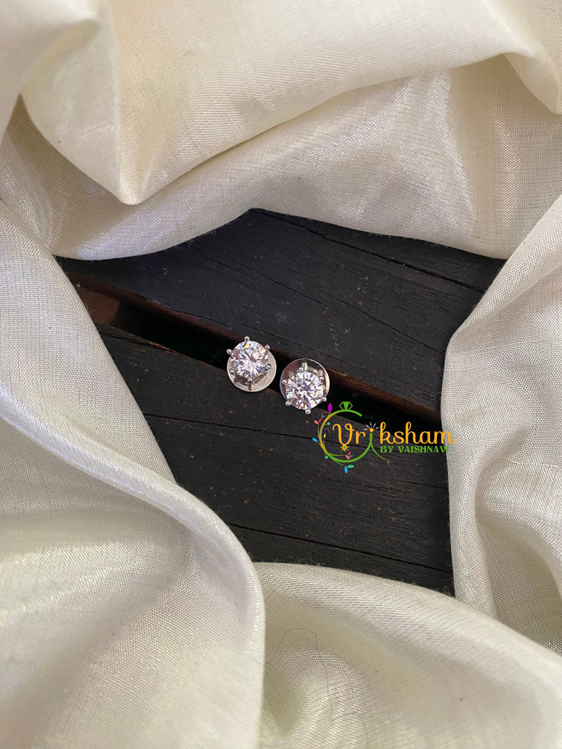 Daily Wear White Tone American Diamond Stud -Designer wear ad earrings; comes as a pair.