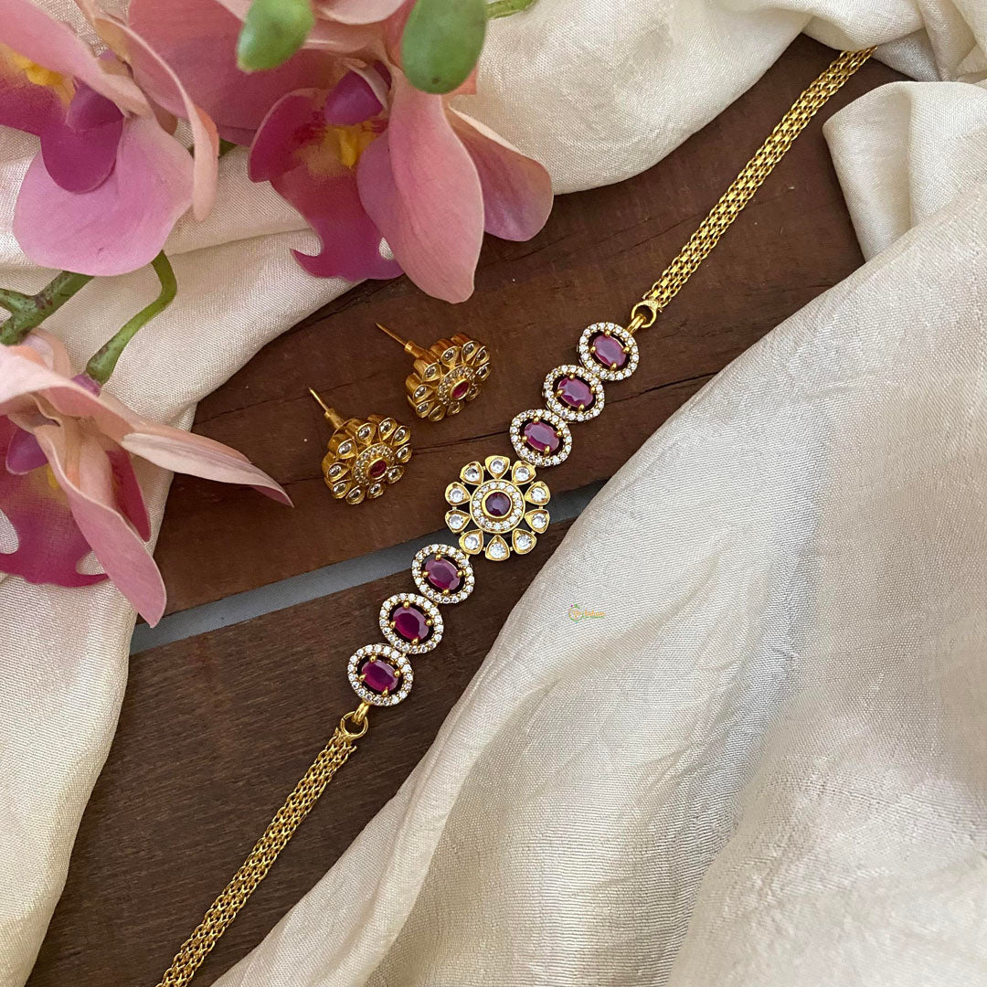 Elevate your style with our Designer AD Stone Short Neckpiece and matching earrings. Made with stunning diamonds, this set adds a touch of elegance to any outfit. Enhance your look...