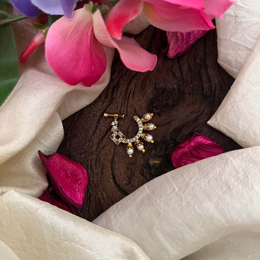 Designer AD Stone Nath / Nose pin-Red White-Pearl-G13876