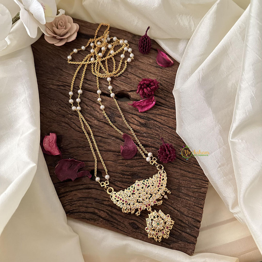 Designer AD Stone Pendant Chain-Red Green-G15416