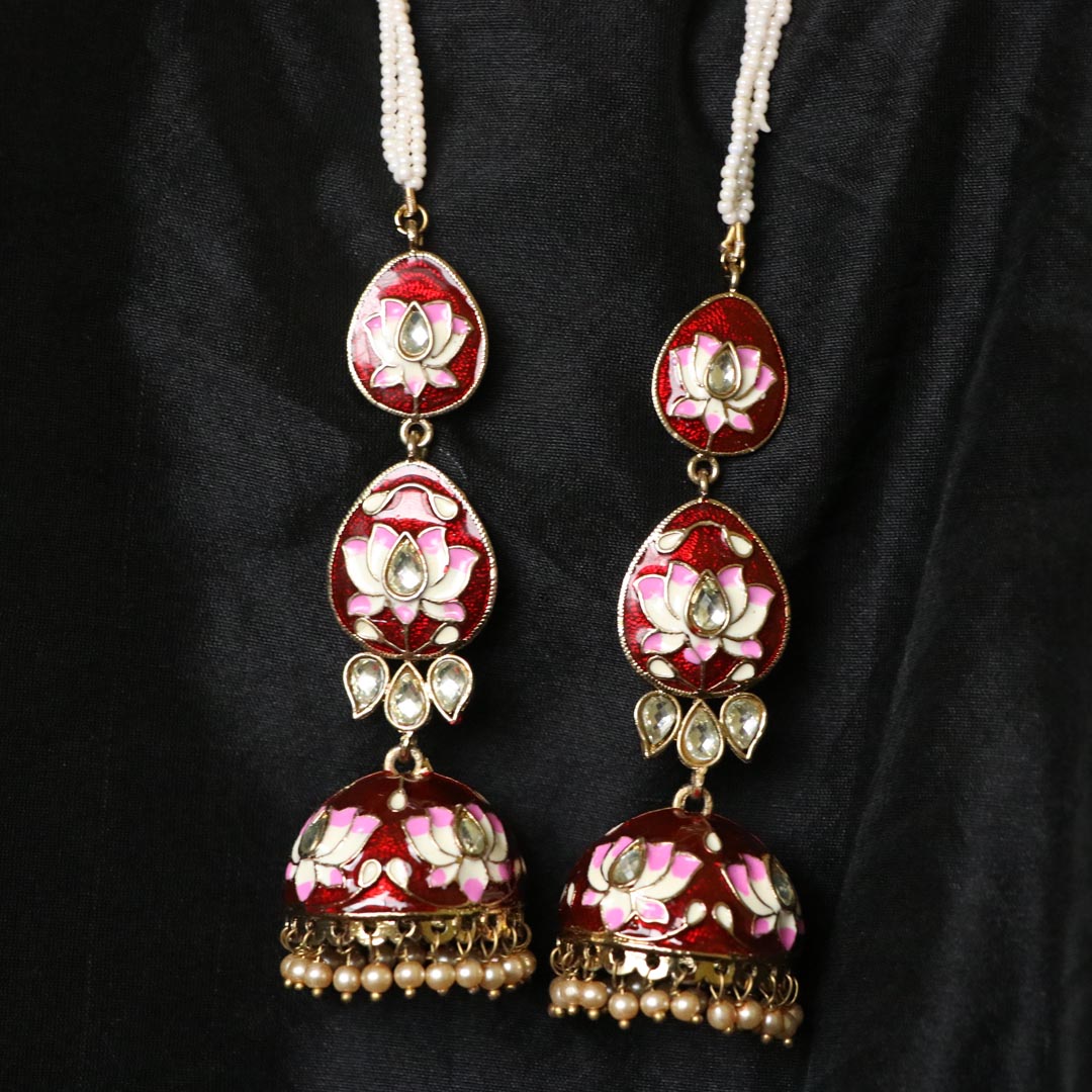 Designer Earrings with Maroon color and two layer of lotus arrangemetn