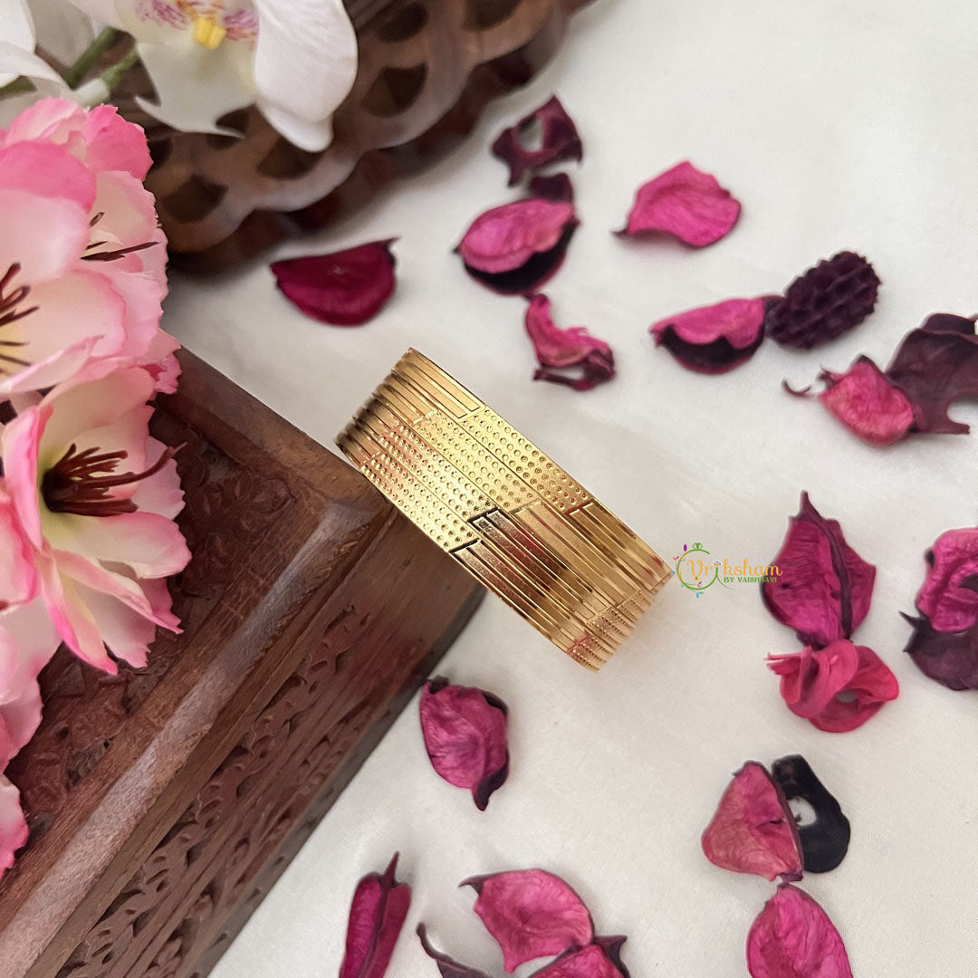 Elevate your everyday look with our Designer Gold Look Alike Thick Daily Wear Bangles! These bangles feature a stunning designer look with a thick, durable build that's perfect for daily wear. Add a touch of elegance and style to any outfit, and confidently take on the day with these beautiful bangles!