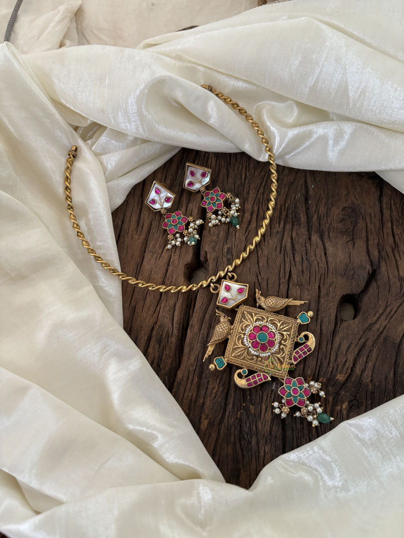 Designer Jadau Kundan Hasli Choker with Pendant ; semi precious stone studded premium quality pendant neckpiece.