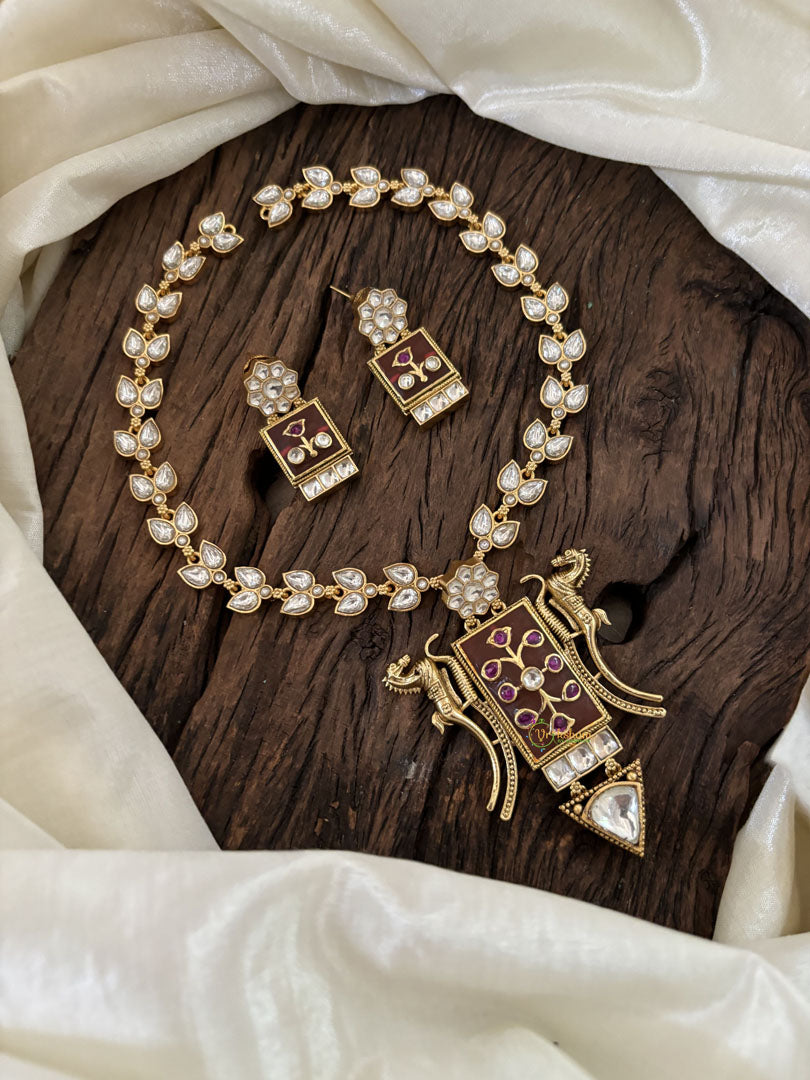 Designer Jadau Kundan Short Neckpiece–predominantly white kundan jadau work and designer pendant.