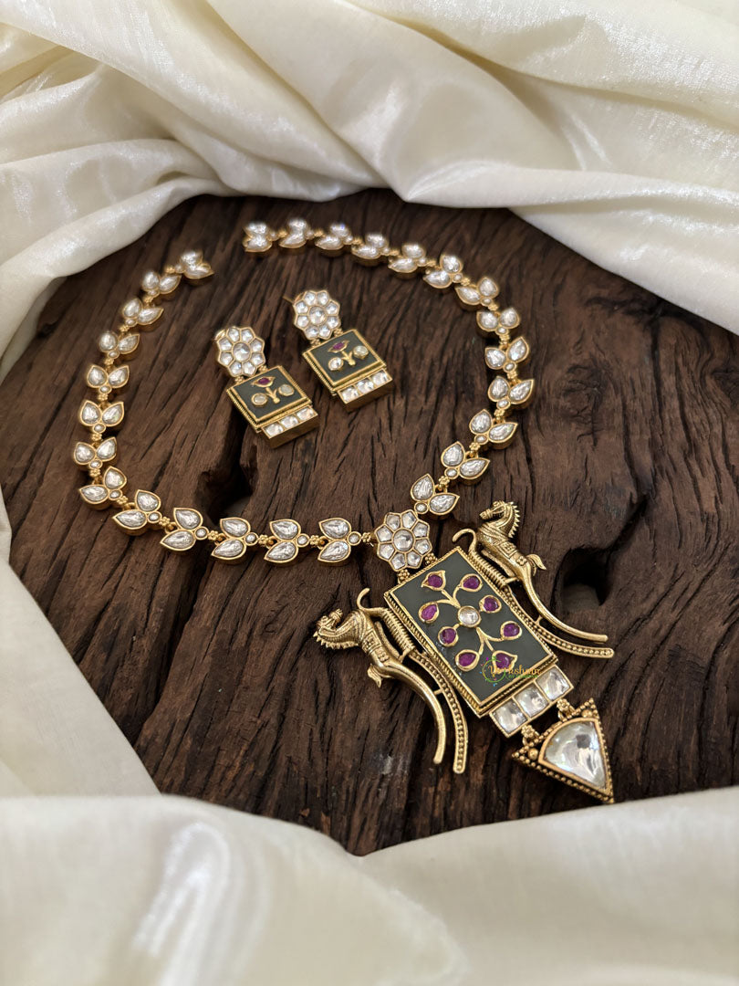 Designer Jadau Kundan Short Neckpiece–predominantly white kundan jadau work and designer pendant.