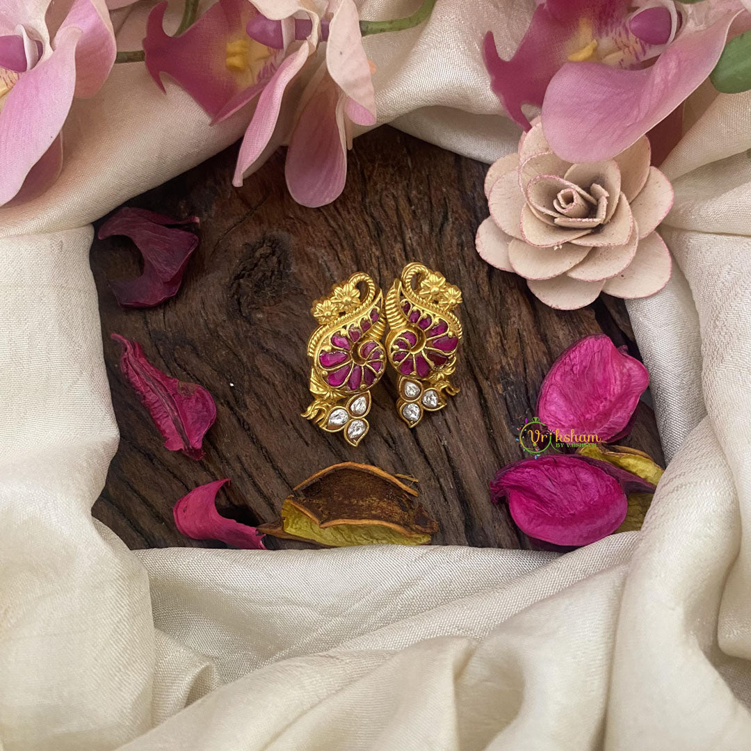 Indulge in luxurious elegance with our Elegant Floral Jadau Kundan Stud. Handcrafted with intricately detailed floral designs and sparkling Jadau kundan, these studs will elevate any outfit and add a touch of sophistication. Perfect for special occasions or everyday wear, they are a must-have for any fashion-forward individual.