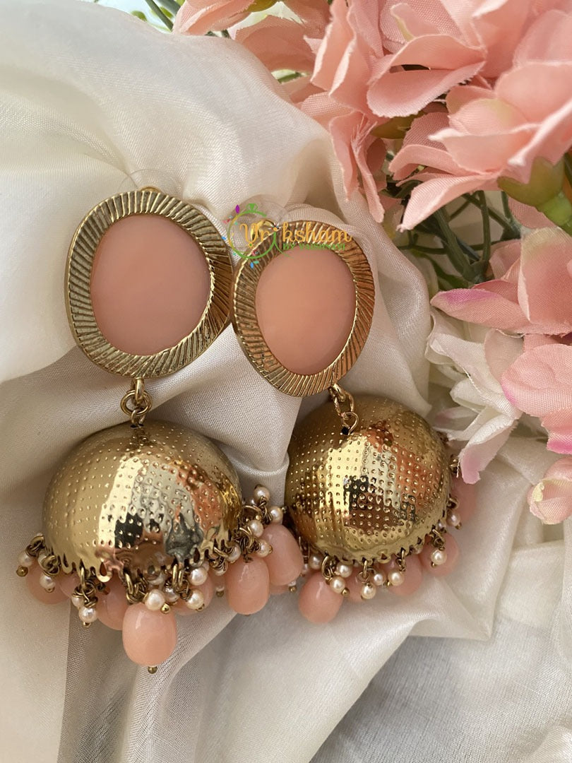 Fancy Designer Peach Jhumkas -Pastel Peach Beads- PEACH JHUMKAS with pearl and bead finish.