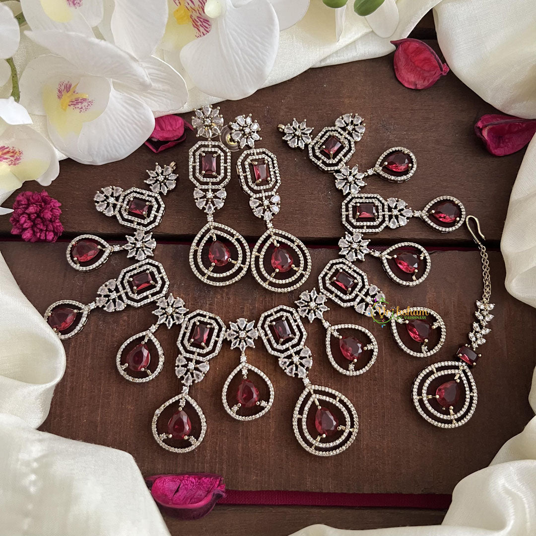 Elevate your style with our Designer Red Victorian Diamond Choker-Tear Drop. Adorned with dazzling diamonds, this choker is the epitome of luxury and elegance. Its intricate design and striking red color will add a touch of sophistication to any outfit. Perfect for those who appreciate fine craftsmanship and exclusivity.