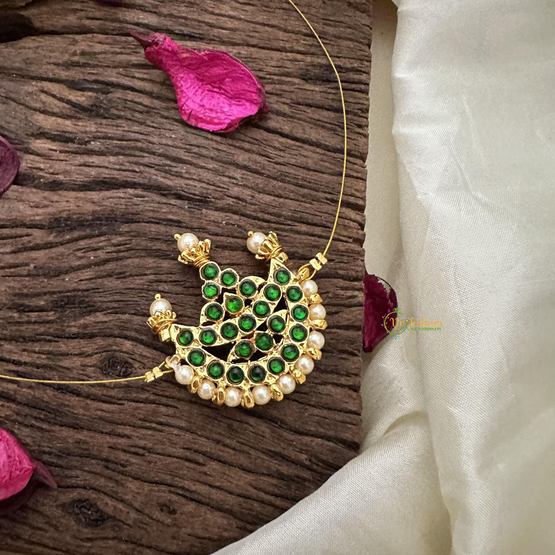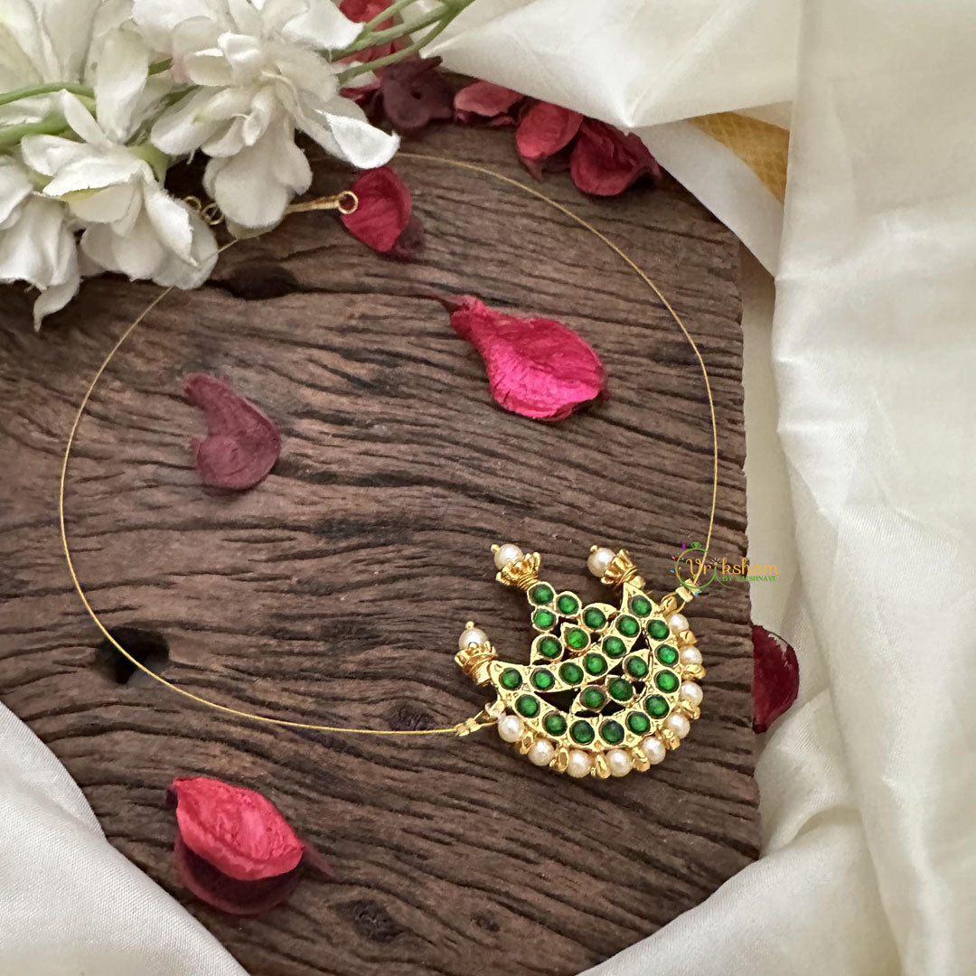 Designer Single Pendant Green Kemp Stone Invisible Neckpiece-G15549
