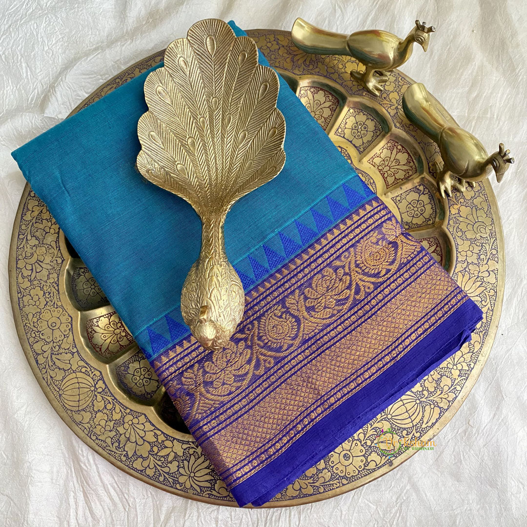 Double Shaded Turquoise Kanchi Cotton Saree with Golden Border -Handloom - Drape elegance - Introducing our Khadi Colour Kanchi Cotton Saree, a fusion of tradition and modernity. This exquisite saree features a subtle khadi color, symbolizing simplicity and elegance, accentuated by a radiant golden border. Suitable for both cultural celebration and casual outing.