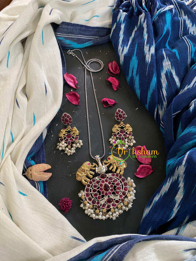 Dual Tone Pendant Chain Neckpiece-Red-S390