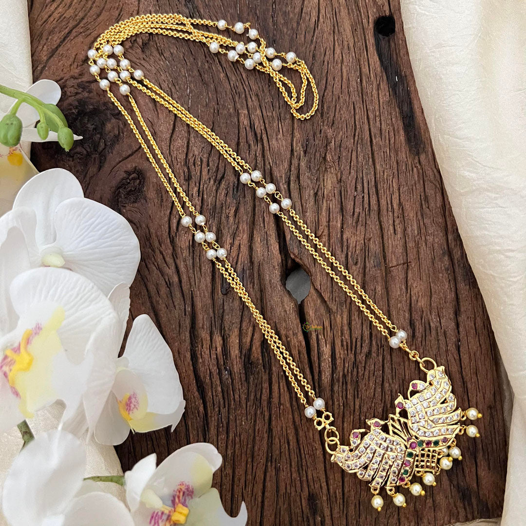 Elegant AD Stone Dual Anam Pendant Chain-Red Green-Pearl-G13702