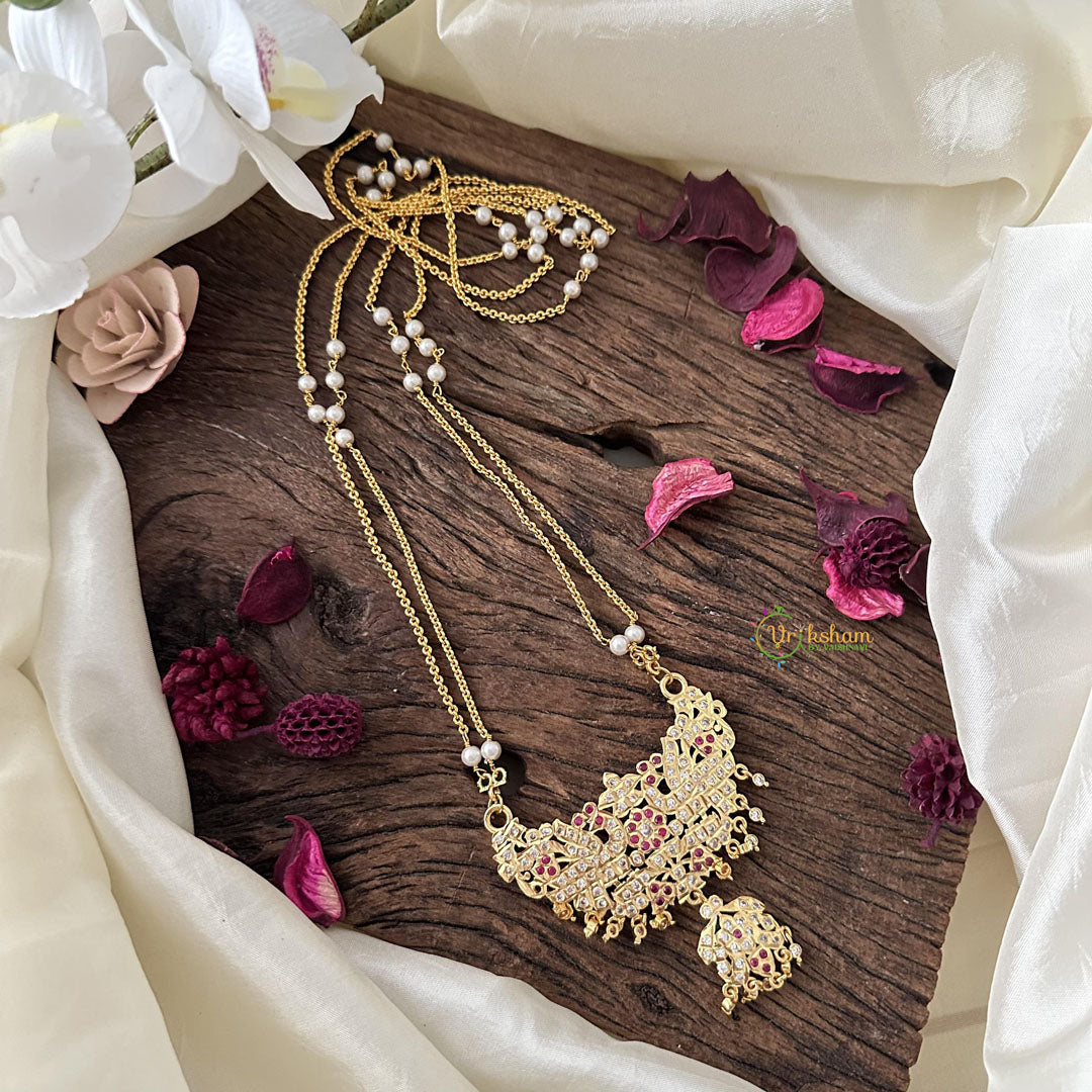 This stunning AD stone pendant chain adds a touch of elegance to any outfit. Featuring sparkling stones and a delicate chain, it is the perfect accessory for a sophisticated and...