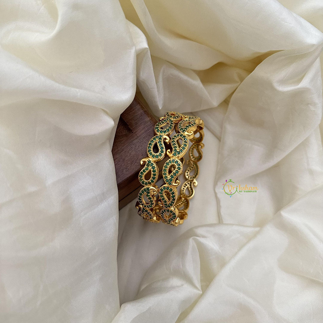Elegant Gold Alike Green AD Stone Manga Bangle Set-G14946
