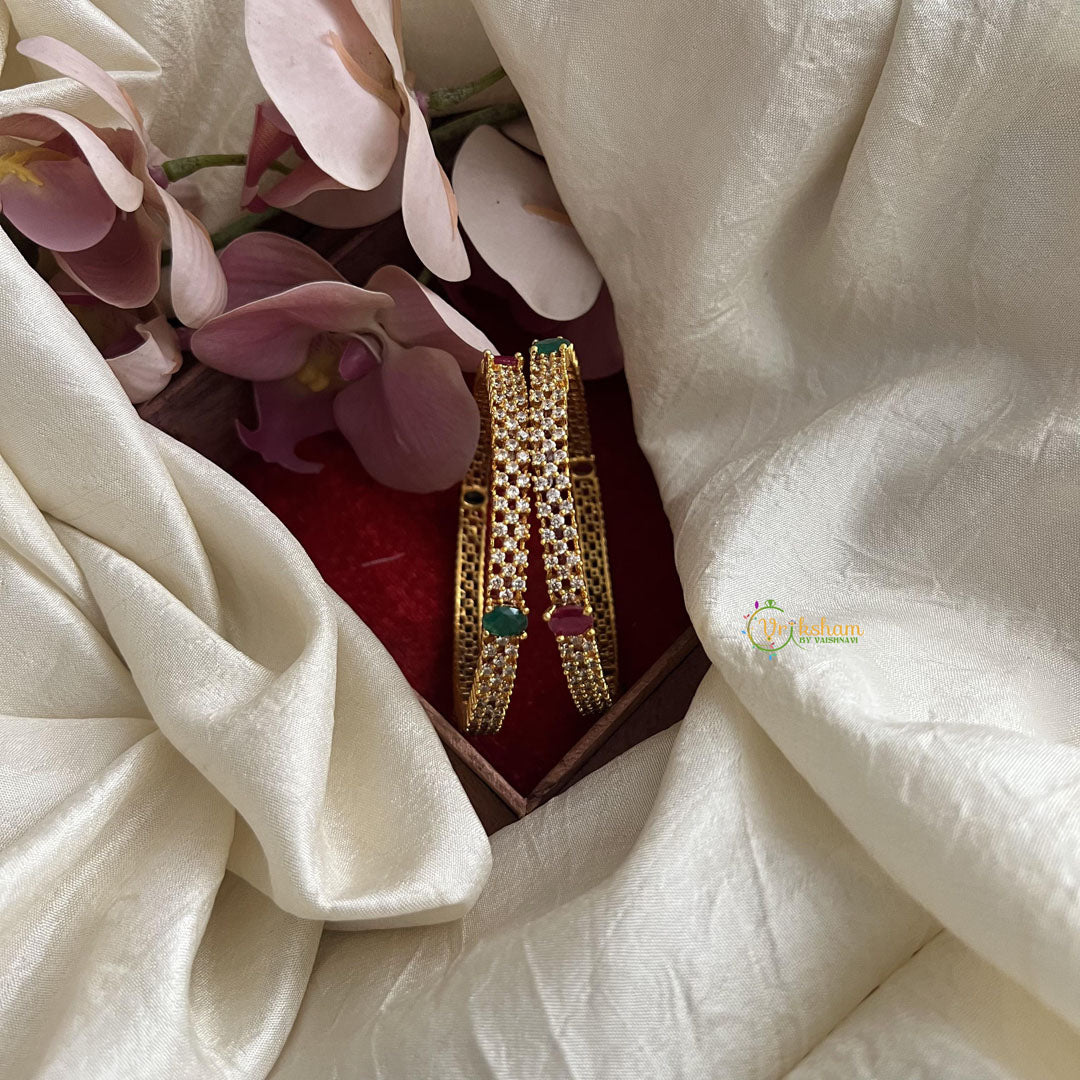 Elegant Gold Alike Red Green AD Stone Bangle Set- AD Stone studded festive bangles , Comes as pair only.