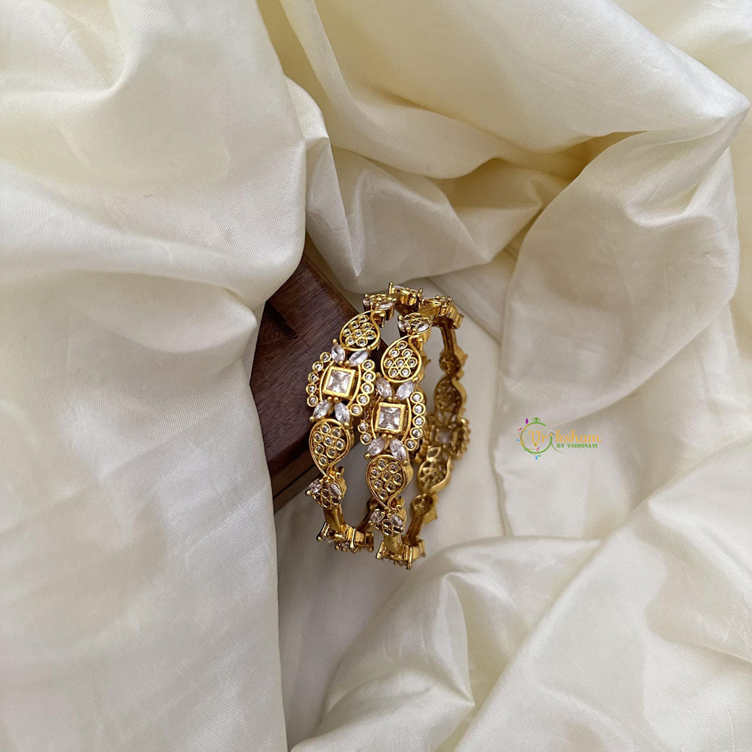 Elegant Gold Polish White AD Stone Bangle Set-G14956